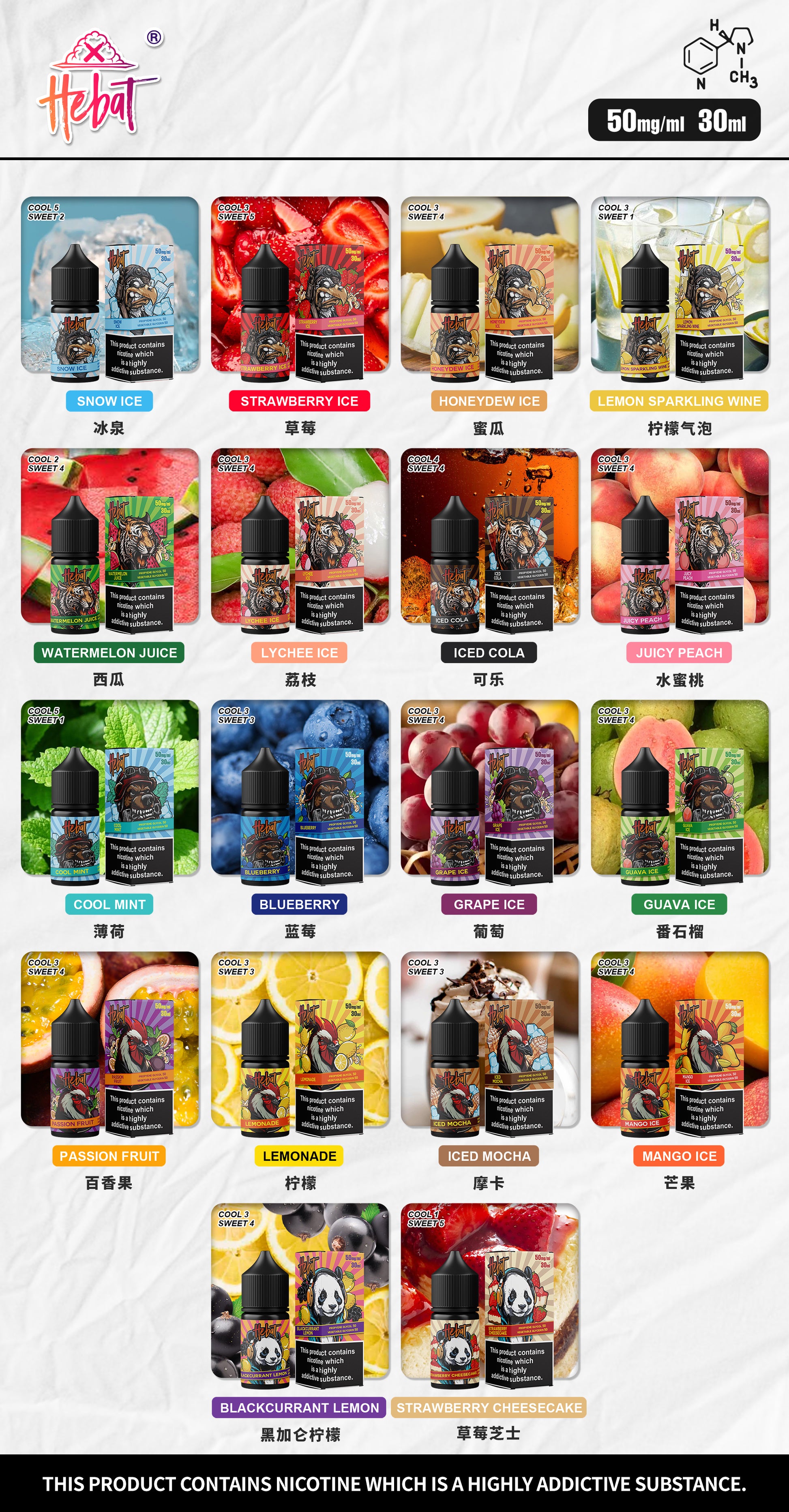 Hebat喜貝煙油30ml/50mg,提供豐富口味和高濃度尼古丁,適合重度吸煙者。高VG比例帶來濃郁味道和豐富煙霧,深受電子煙愛好者推崇。立即選購,享受極致煙油體驗!